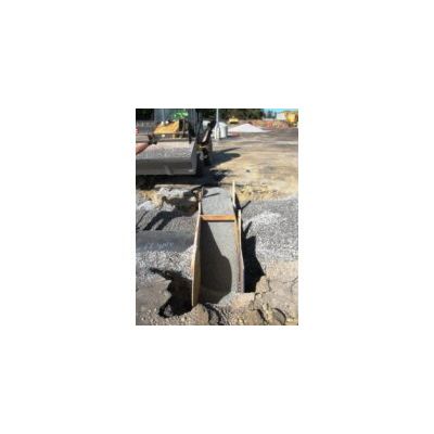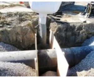 When placed in a trench perpendicular to a sewer line or other conduit (as pictured at left), product can be wetted to produce a durable, structurally stable barrier that maintains a very low permeability. The coating of individual particles swells against the exterior sidewalls of the pipe and “self-keys” into surrounding soil without the need for benching, installation in lifts, or manual re-compaction. The result: an economical and technically superior barrier.