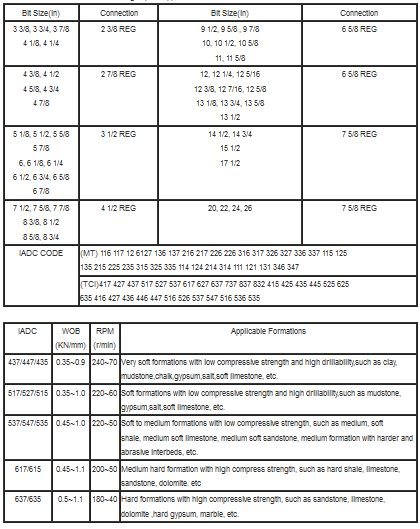 IADC: 114,115,116,117,124,125,126,127,134,135,136,137,214,215,216,217,244,246,247,324,325.