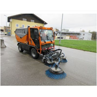 The sweeper attachment TK-M can be mounted onto the platforms or ball-systems of various carrier systems, e.g. Ladog T-1250, Boki or similar. The attachment can be demounted quickly so the chassis can be used for other attachments easily (e.g. winter maintenance, mowing, etc.)