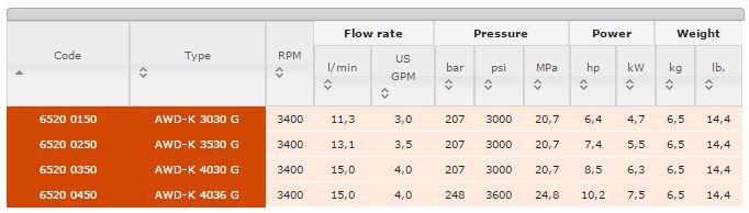 COMET - Model AWD-K (r.p.m. 3400 - Ø 1 SAE J 609 A) -Triplex Piston Pump
