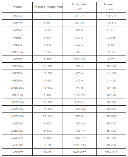 JMEE pumps field-proven dependability, efficiency, durability and versatility give users the best using experience. With highly-efficient pumps and proven dependability, JOY M&E`s products are utilized world-wide in thousands of applications. A wide product range of plunger pumps are available: 3LPM to 1200LPM, 20bar to3000bar. Pumps are available in brass, nickel aluminum b ronze, 316 stainless steel and duplex stainless steel. Transmission type: Belt drive/ Gear box /Speed reduction type Driven type: Electric motor/ Gasoline engine/ Diesel Engine. Pressure: 10bar to 3000bar. Flow rate: 2LPM to 1200LPM. Pressure and flow rate could be customized according to the detail requirements.