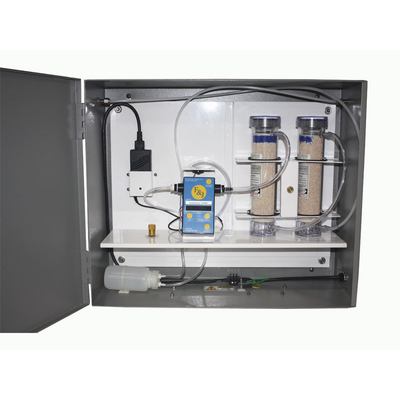 The Model TCS-3000E-BL Tritium Collection System is a tritium collection system consisting of a diaphragm pump, a brushless DC motor, automatic flow control and 2 removable polycarbonate Indicating Silica Gel columns. The flow and volume of air passing through the system is adjusted and measured by a microprocessor controlled Digital Flow Meter (DFM). The DFM utilizes a precision-machined orifice to measure flowrate. The DFM displays on-board calculations on a bright large character LED display. Flowrate and totalized volume are both corrected to a reference T and P. Elapsed time, flowrate and volume are displayed at operator selection.