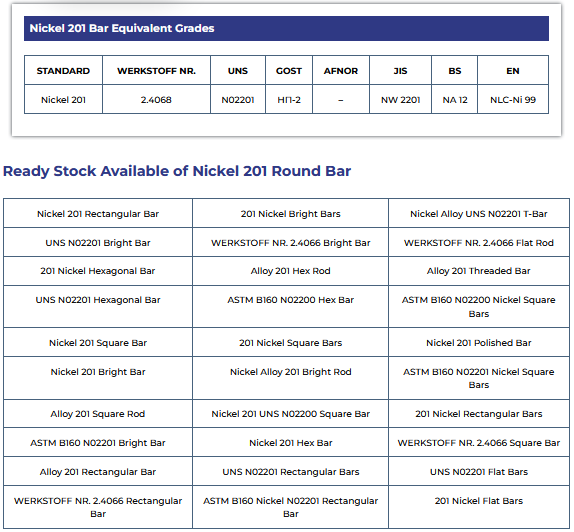 At Triton Alloys inc. all Nickel Alloy 201 round bars, Nickel Alloy 201 bright bars and Nickel 201 hex bars are subject to strict inspection at each stage starting from material purchasing to product dispatch. They are visually examined for conformity to astm. ASMb. DIN. EN, and JIS codes and standards. We can also appoint official certified inspection Agencies upon request of our clients so that they can witness the material reports, dimensions and quality conformity of products.