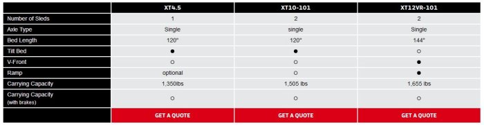 - 53" bed width for the XT4.5 and 101" bed width for all other models.