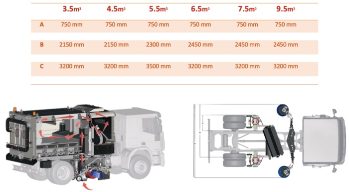 - Garbage hopper installation in the desired volume on a suitable carrier vehicle between 4 m³ and 10 m³.