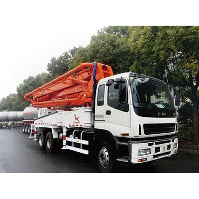 TP38RZ5 truck-mounted concrete pump has 38m vertical reach., It is a set of pumping, drives, most effective allocation of concrete transport equipment. The TP38RZ5 concrete pump provides the users reliable pumping performance along with the highly wear resistant parts including delivery pipe, the discharge port, wear plate, transition bushing, concrete piston, cutting ring and delivery cylinder that improve the pumping efficiency and reduce downtime. Various configurations and high-quality components all the main components are used the well-known famous brand, this boom offers more articulation than any other boom in its class.