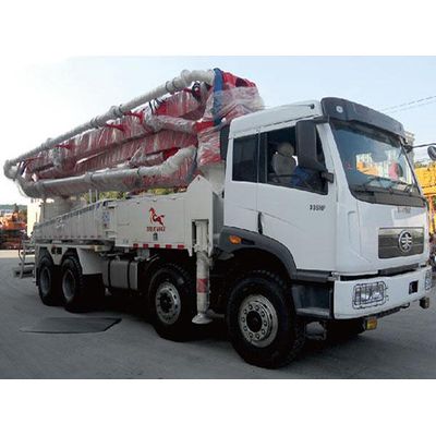 TP25M4 concrete pump is the company with the best quality in the short arm pump. It is a set of drives, pumping, one of the most effective allocation of concrete transport equipment. The pump has high reliability, economy, high security and high durability, chassis, power, electric, hydraulic pumping system to match. Fast and flexible arm, flexible and optimized boom design, the concrete pump features wider spreading area for different site conditions. Leg support small footprint, it is easy to move the vehicle. The concrete pump also includes mobile and flexible, stable and secure, discharge port, wear plate, transition bushing, delivery cylinder, cutting ring and concrete piston that improve the pumping efficiency and reduce the time.