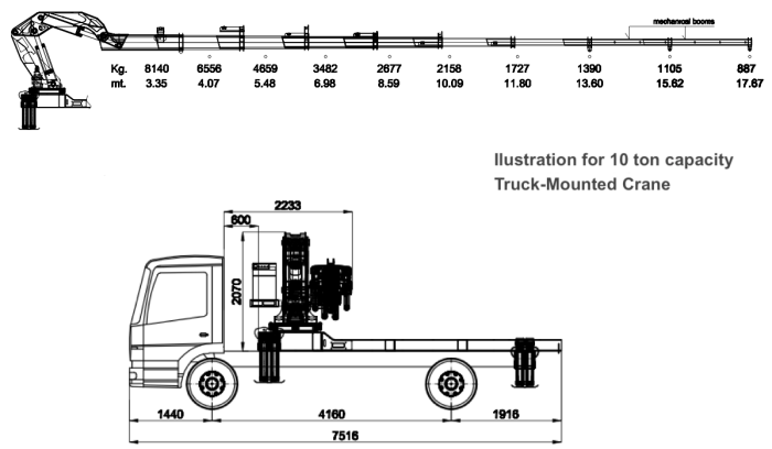 Truck-Mounted Mobile Cranes equipment consists of two parts: the truck and the booms (hydraulically operated arms) installed on the chassis. Truck-mounted Cranes in operation move slowly and steadily due to their load carried by the booms and they are supported by counterweights and outriggers for stability during operation.