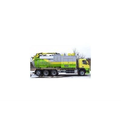 A truck mounted unit that can transport bulk materials and liquids by vacuum or overpressure through a hose system with a diam up to 200 mm. The vacuum unit is designed and adapted for mounting onto a four-axle truck chassis with two front axles.