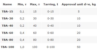 Scales with a length of the platform from 6 to 24 m, with a maximum weighing range of 30-80 tons and an axle load of 15 tons, designed for medium usage conditions.