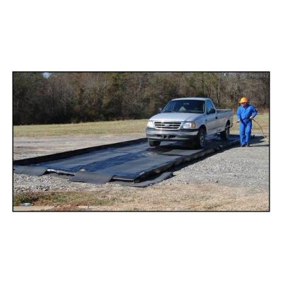 The PREVENT Truck Wash Berm is designed as a mobile wash containment system. Instead of the standard 1` walls used on the PREVENT IS or OS, the Truck Wash berm uses 4` foam encapsulated entrance/exit walls with 4` foam side walls. This allows for continuous drive-over/drive-through applications where folding a wall up and down each time would be impractical.