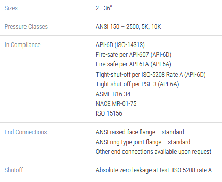 - Fire safe certification: API-607 / API 6FA. Benefit: Enhanced process safety