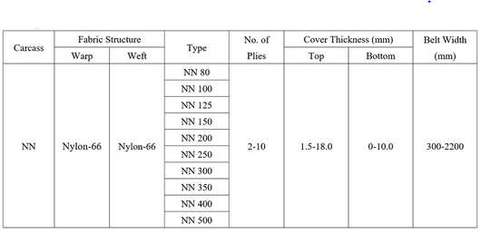 The nylon canvas is woven by nylon fabric both in warp and in weft. It is the most widely used fabric in rubber industry, and its outstanding merits are its high abrasion resistance, great tensile strength and good fatigue resistance. Conveyor belt with nylon canvas inside has the characteristics of thin belt body, high tensile strength, good shock resistance and trough ability, high adhesion between plies, splendid flexibility and long working life. Nylon conveyor belts are suitable for medium, long distance and heavy-load transportation of materials, widely used in mining, metallurgical industry and architectural industry, ports, etc.
