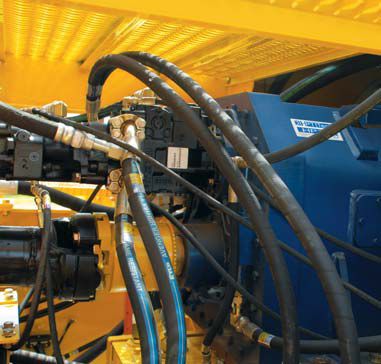 For versatility in varying job applications, the TG9000 is available with two CAT twin-turbocharged diesel engine options: 800 hp (597 kW) and 1000 hp (746 kW). A PT Tech wet clutch with 2:1 gear reduction is controlled by a microprocessor with built-in torque limiter to help protect vital engine parts.