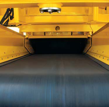 Undermill conveyor. A smooth, 60” (152 cm) belt enables high-volume product removal. To resist tear and puncture, the conveyor is constructed of .5” (1.3 cm) thick rubber belt.