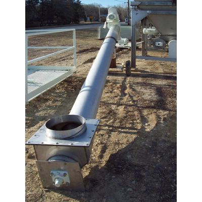 Ranco utilizes tube augers most often on an incline. Many of our tube augers are engineered with a feeder screw section that is less than full pitch flighting. This allows the auger to self regulate without over filling. Tube augers are useful when relatively low volumes need to be moved a short distance and are often called a ‘jump-auger’. Stainless steel tubes are normally used but some units use fiberglass tubes.