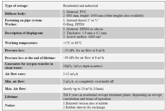 Diffusers AKWATECH GJ RT 63/1000 may be used in the following processes: