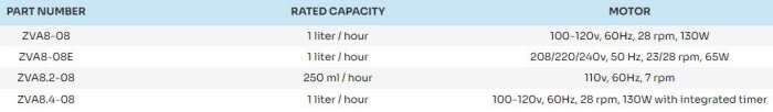 - 220v, 50 Hz European models available by adding “E” to the end of the part number (not for use in the United States)