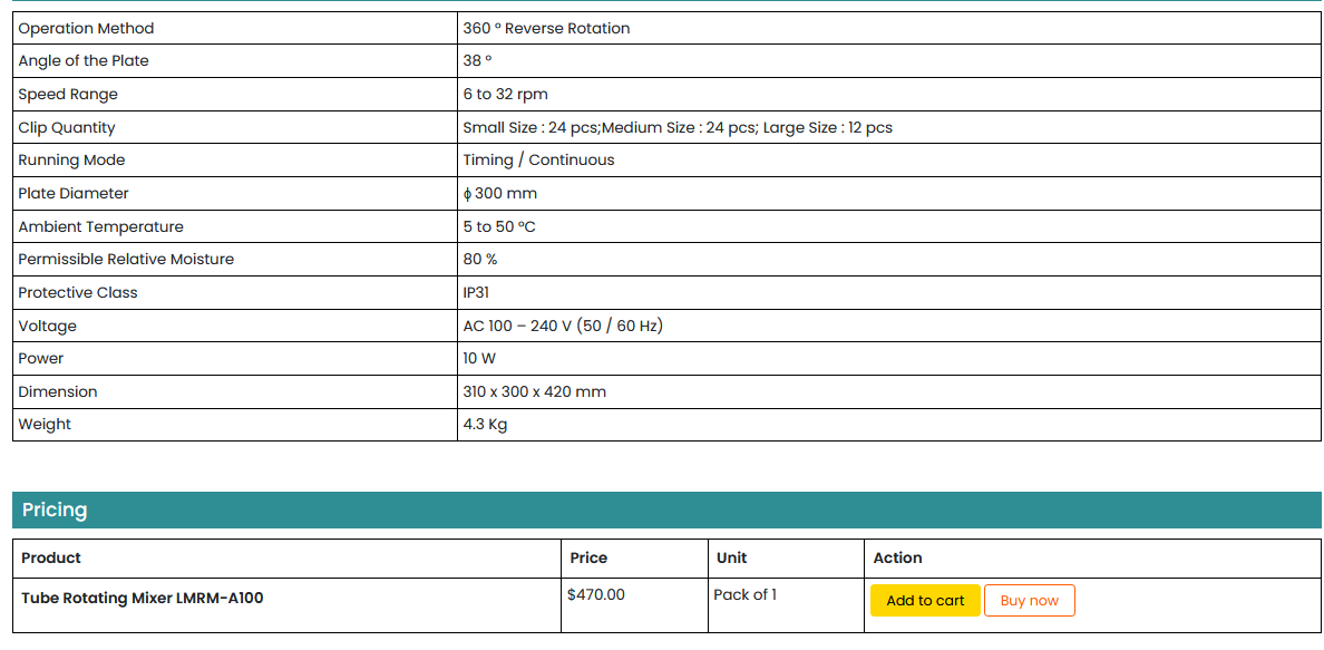 Tube Rotating Mixer LMRM-A100 are applicable for thorough mixing of samples in various tube sizes across laboratories, research facilities, and industries, ensuring uniformity in chemical reactions, biological processes, and sample preparations within controlled conditions, including cold rooms and incubators.
