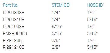 Part No.: PI290808S Stem OD: 1/4" Hose ID: 1/4".