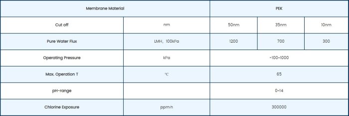 High-quality non-woven fabric and double-sided welding technology. Exclusive PEK material. Chemical resistance. Superior hydrophilicity. Strong anti-pollution ability. As a pretreatment process, the effluent quality is stable with turbidity less than 0.5 NTU and SDI less than 4.
