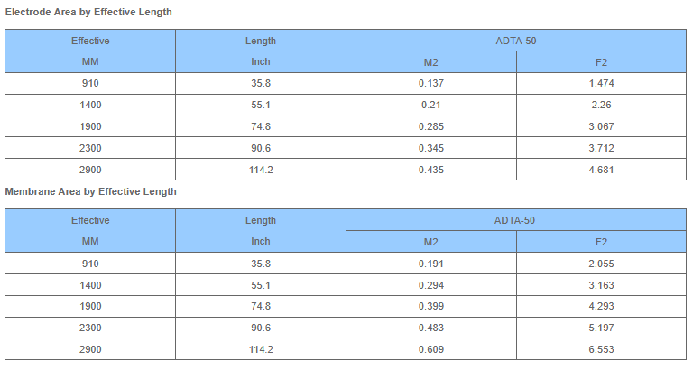 - Electrode Area per Length: 0.15m2/m