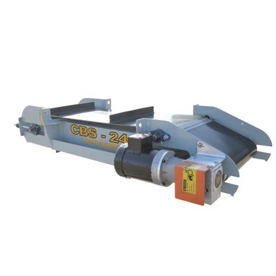 24″ 750 lbs. 3/4 hp motor, gearbox Ceramic8 Magnet Assembly, 12″ carryover magnet Cleated Belt (4) Eyelets for Hanging
