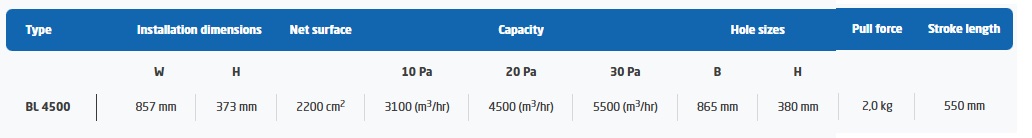 The BL 4500 is a side air inlet with a unique V-shaped flap that creates a jet stream with more mass. This gives the incoming air a longer throw, which allows the air to warm up better. The unique V-shape of the flap of the BL 4500 side air inlet creates a jet stream with more mass.