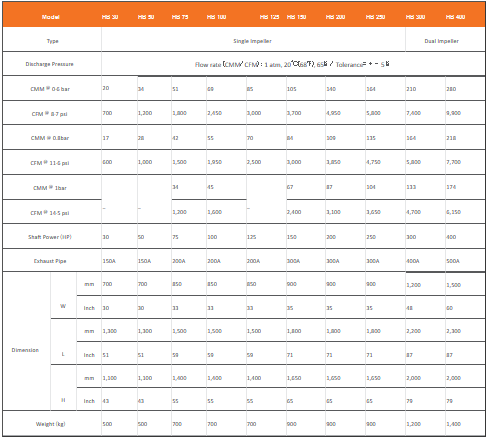 - Standard type: 30HP - 400HP / 0.4bar - 1.5bar (5.8 - 21.8psi)