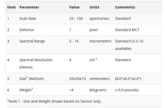 This compact field and industrial instrument is used for both ground based and airborne applications requiring high speed spectrometry, and utilizes our patented Turbo FT technology. Applications in remote sensing for geological mapping, airborne chemical agent detection, and online process control systems. Our rugged and compact design allows you to `Take It There`.
