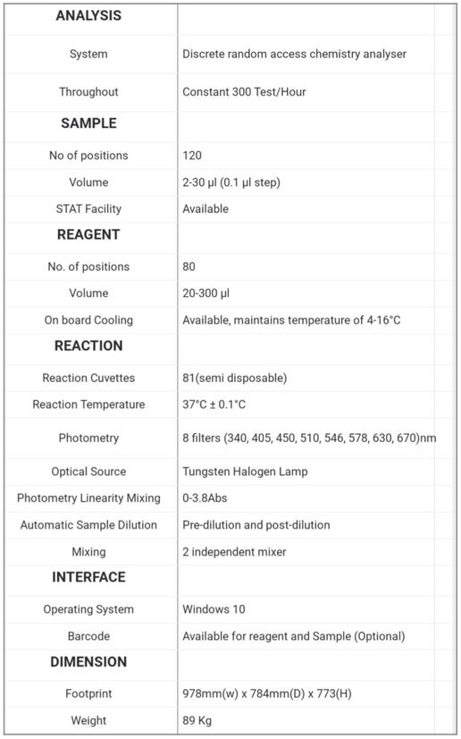 - Discrete random access Bench Top Biochemistry analyzer