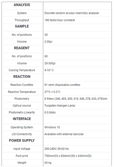 - Discrete random access Bench Top Biochemistry analyzer