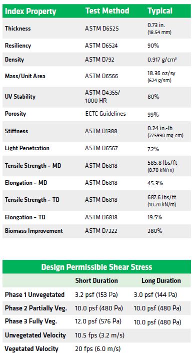 The C350 shall meet Type 5A, B and C specification requirements established by the Erosion Control Technology Council (ECTC) and Federal Highway Administration’s (FHWA) FP-03 Section 713.18.