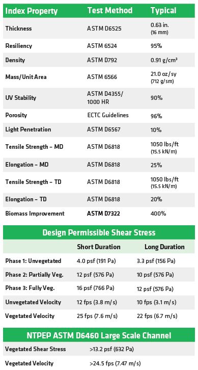 The P550 shall meet Type 5A, 5B, and 5C specification requirements established by the Erosion Control Technology Council (ECTC) and Federal Highway Administration’s (FHWA) FP-03 Section 713.18.