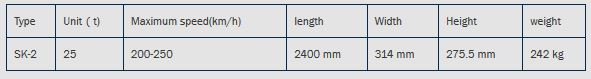 Generally, SK II sleeper is suitable for ballast less track with standard rail gauge of 1435 mm. It`s used for radius ≥300 m of curve track and direct track, and applies to steel rails of 50 Kg/m. The fastener matched is Type WJ8A/8B. The maximum axle load is 25 t.