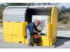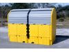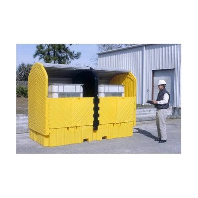 Comply with spill containment regulations while storing IBC tanks outdoors. Store two IBC tanks outdoors and keep them safely out of the elements while providing enough containment to meet EPA and SPCC spill containment regulations. The covered containment will also help to meet the NPDES requirements.