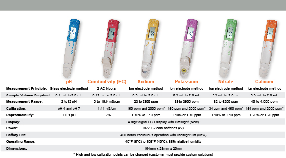 - Waterproof pocket-sized meter with digital calibration