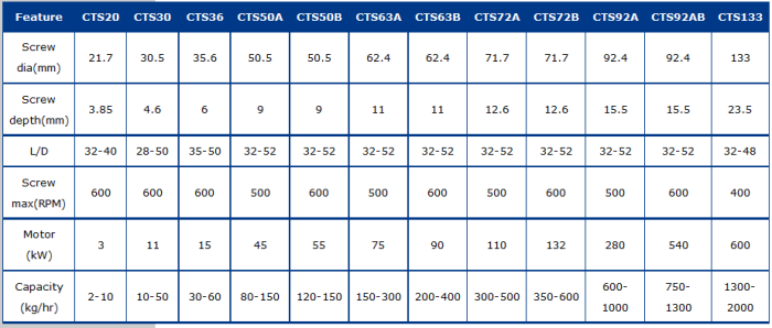 - Capable of processing all thermoplastics, non-thermoplastics and rubber materials