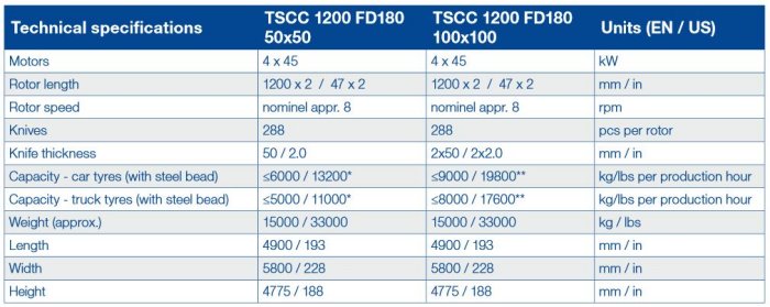 * Finished product <50 mm (according to Ecopneus definition of clean-cut)