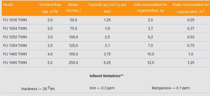 - soft water – high efficiency softening due to use of high-capacity cation-exchangers