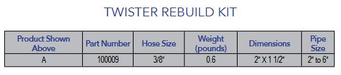 The Twister rebuild kit comes with the replacement pieces shown below for your Twister Nozzle. For more information about the Twister Nozzle