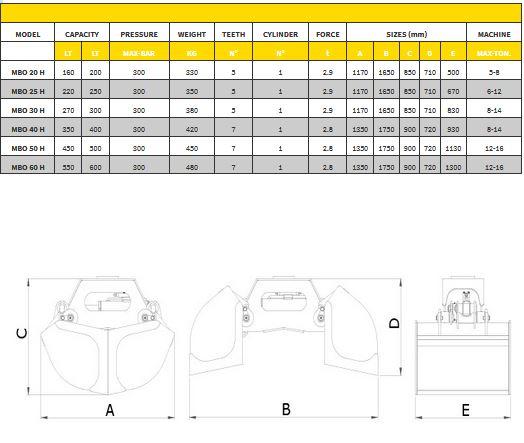 Minelli - Model MBO-H -Two-Segment Buckets