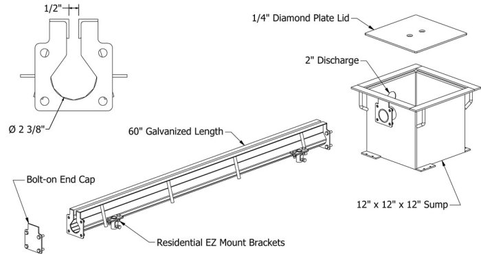 The Residential U-drain system features an ADA compliant 1/2" slot opening that is able to handle anything from snow melt to washing a car indoors. This slot acts as the intake for the drainage to enter the trench and make its way to the sump pit. The standard Residential U-drain sump size is 12"x12"x12" with larger sizes and multiple inlet options available.