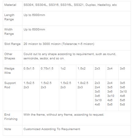 The flat wedge wire sieve screen plate is an important working part of the screening machine to complete the screening process. Each screening machine must select a sieve plate that meets its working requirements. The various characteristics of the material, the different structure of the sieve plate, the material and the various parameters of the sieve machine have certain influence on the screening ability, efficiency, running rate and life of the vibrating screen. Different materials and different places should use different sieve plates to achieve the best effect of screening. The sieve plate should have sufficient strength, high opening ratio and difficulty in plugging holes. When the vibrating screen vibrates, the wedge wire sieve plate passes through materials of different shapes and sizes, material size, and under the action of vibration force, the materials of different particle sizes are separated to achieve the purpose of classification.