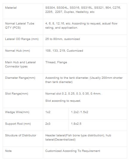SS 316 wedge wire screen water lateral filter pipe was considered as the most effective media for under draining. Wedge wire has an inherent even pattern if open area that allows for accurate flow distribution. Its internal support rod structure allows it to handle the most demanding load applications. Constructed of stainless steel wedge wire is easily worked to meet both typical and unique under drain designs. Water treatment equipment screen pipe as an efficient collector, the screen lateral is available in several sizes, with various slots and end fittings. Most commonly, the screen lateral is provided with a solid cap on one end and a threaded pipe connection on the other end.