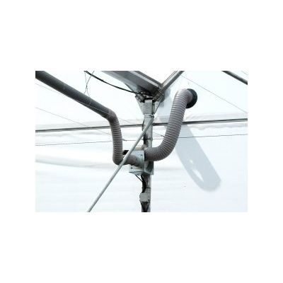The double inflated film system consists of creating an air chamber between two layers of plastic. The air chamber is kept inflated using small fans that inject air into the chamber via PVC and flexible pipes. This air chamber reduces the heat transmission coefficient towards the outside, achieving a considerable energy savings and temperature control. This system may be used on roofs as well as along the perimeter.