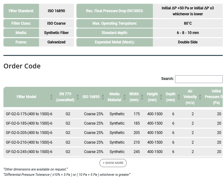 Fancoil Filter