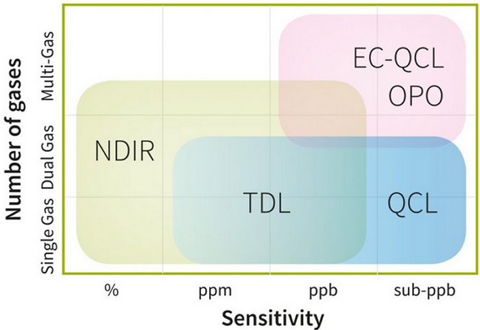 Photoacoustic infrared spectroscopy engine with a patented ultra-sensitive cantilever sensor enables sub-ppb detection limits.