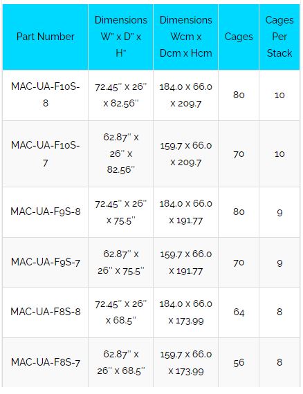 - Available in your choice of 3 cage stack heights – 10, 9 or 8 high