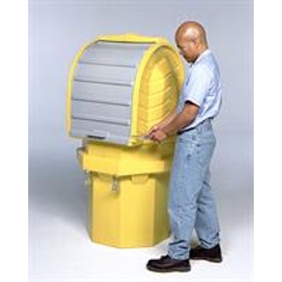 This two-piece spill containment unit provides safe and secure outdoor storage for your 55-gallon drum. Simply use your forklift and/or drum handling equipment to lift and lower the drum into the bottom sump, then place the top portion over the drum where it locks in place onto the lower sump portion. Once assembled with the drum in place, access is quick and easy via the roll top door. The top Hard Top section does not need to be removed again unless the drum needs to be replaced.